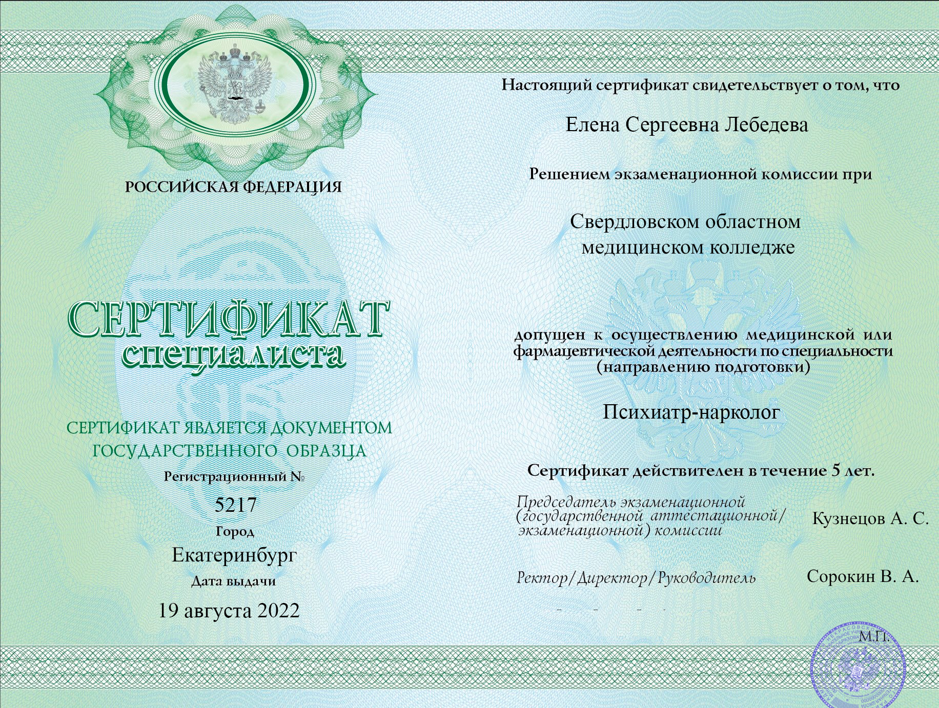 Елена Сергеевна Лебедева врач нарколог клиники доктора Стукаловой в Наволоках